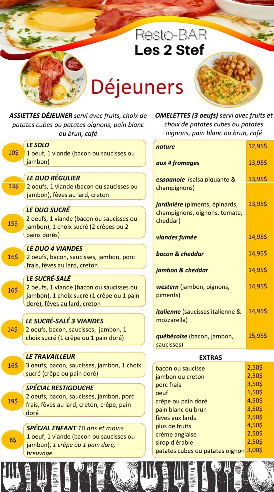 Découvrez notre nouveau menu déjeuner et préparez-vous à une expérience gustative inoubliable ! Notre restaurant ouvrira ses portes dans 2 à 3 semaines, la date d'ouverture pour les déjeuners sera annoncée sous peu.